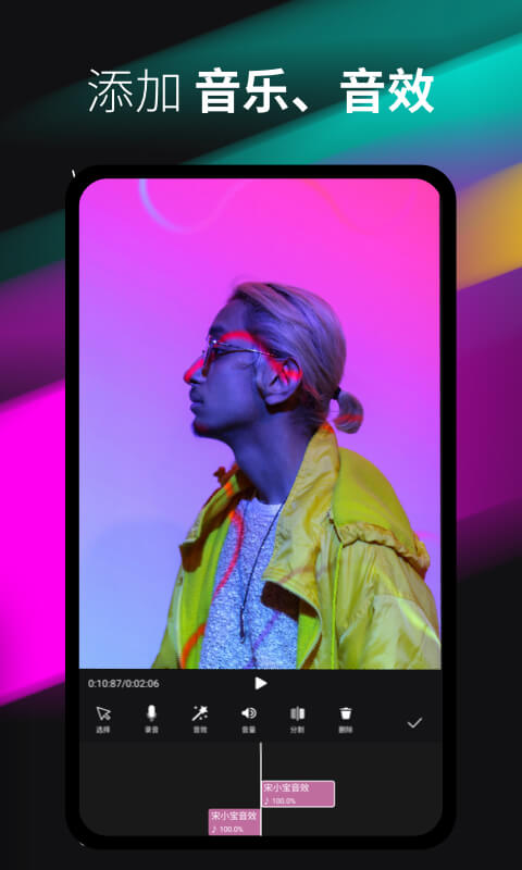 它有一个很大的音乐资源库,添加背景音乐,编辑和制作不同的视频。