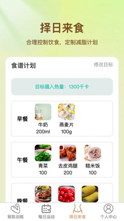 2、根据用户的目标,App将为用户生成适合自己的运动计划;